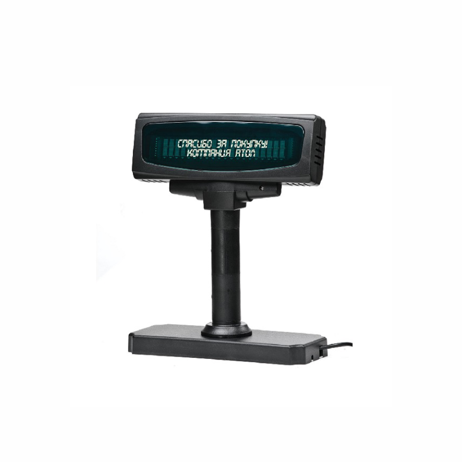 Дисплей покупателя Shtrih LB-220 2*20 VFD 2х – строчный дисплей, по 20 символов в каждой строке. Обладает высокой яркостью и широким углом обзора. Для сравнения, средняя яркость дисплея покупателя типа LCD составляет всего 200cd/m2, в то время как яркость LB 220 составляет 1000cd/m2, что в пять раз ярче. Поэтому клиент прекрасно видит всю информацию отображаемую LB 200 даже при ярком солнечном свете, при удивительно широком угле обзора.